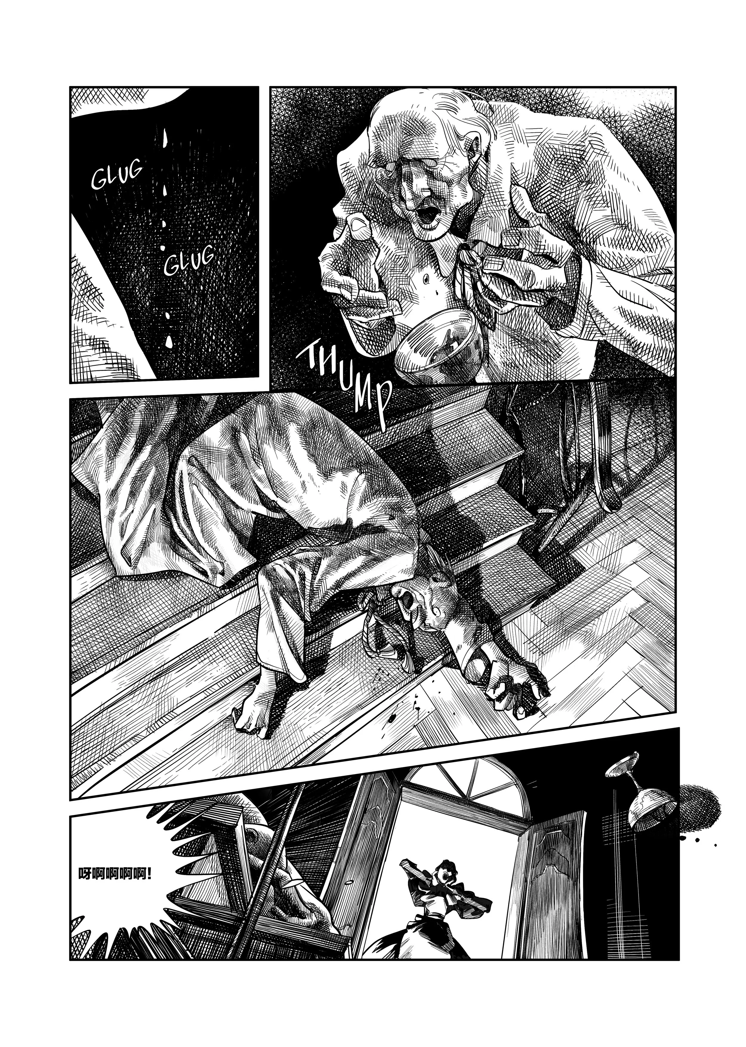 F: Ghost of History is a minicomic talking about a female psychic who claimed having supernatural power which can cure people’s diseases and communicate with spirits. She lured people into drinking her poison and collected their souls in order to resurrect her dead twin sister through devil. The devil tricked her, and her experiment failed in the end. The comic has won the 2024 ijungle illustration merit award for comics.